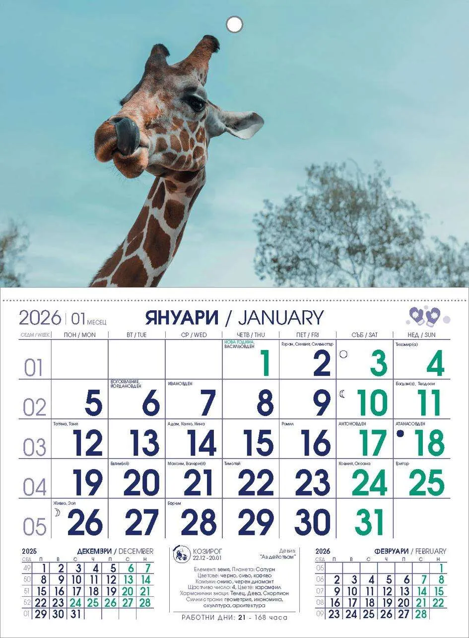 | Рекламна цял календар | 320/480 мм 300гр. опаковъчен картон |